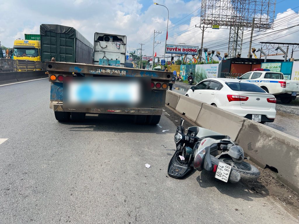 Nạn nhân là chị Tr. (28 tuổi, quê Hố Nai, Biên Hoà) điều khiển xe máy hiệu SH Mode biển số 60F4-374.88, lưu thông hướng từ cầu Đồng Nai đi Suối Tiên. Khi đến đầu dốc Thiên Thu, trước khu vực chung cư Bcons đang xây dựng, xe máy của chị Tr. đi vào làn ô tô và va chạm trực diện với xe đầu kéo.