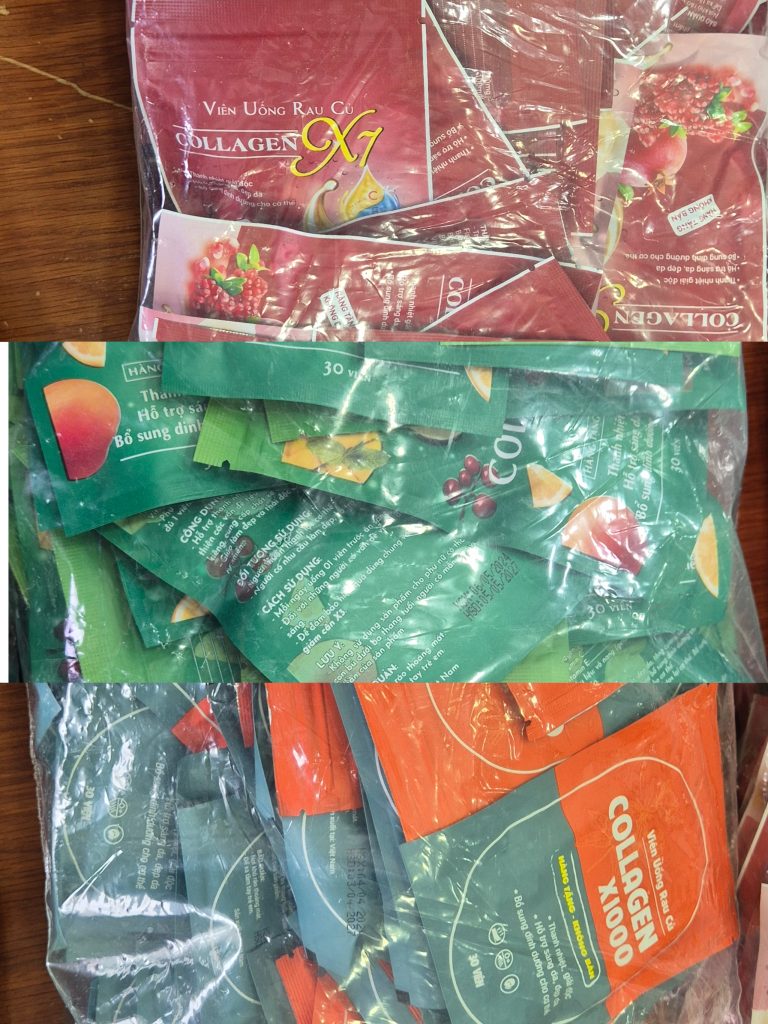 Trên giấy tờ, đây đều là các sản phẩm được cấp phép lưu hành. Tuy nhiên, Ngân đã lợi dụng hình thức “hàng tặng kèm” để tiêu thụ thêm một loại sản phẩm khác mang tên “viên rau củ Collagen”.
