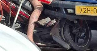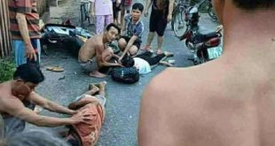 Tại hiện trường, 2 chiếc xe máy hư hỏng nặng, các nạn nhân bị thương được người dân và cảnh sát đưa đi bệnh viện cấp cứu.
