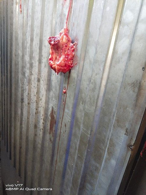 Hiện trường vụ việc cho thấy quần áo và phần cơ thể nạn nhân bị mắc kẹt trong bộ phận quay của máy. Vết máu, mảnh vải và mô cơ vương vãi xung quanh khu vực, tạo nên khung cảnh ám ảnh.