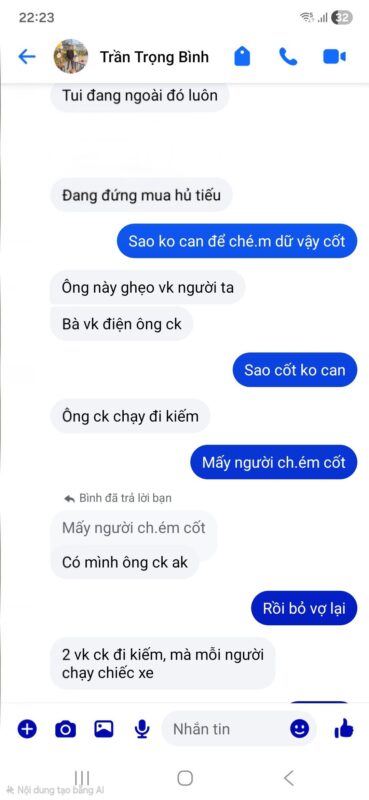Tại đây Công chọc ghẹo và có lời nói khiếm nhã với chị Yến. Sau đó chị Yến gọi điện cho chồng là Trần Văn Hiền Em (sinh 1992, ngụ ấp Bình Đông 2 , xã Bình Thạnh Đông, tỉnh An Giang) kể lại vụ việc.