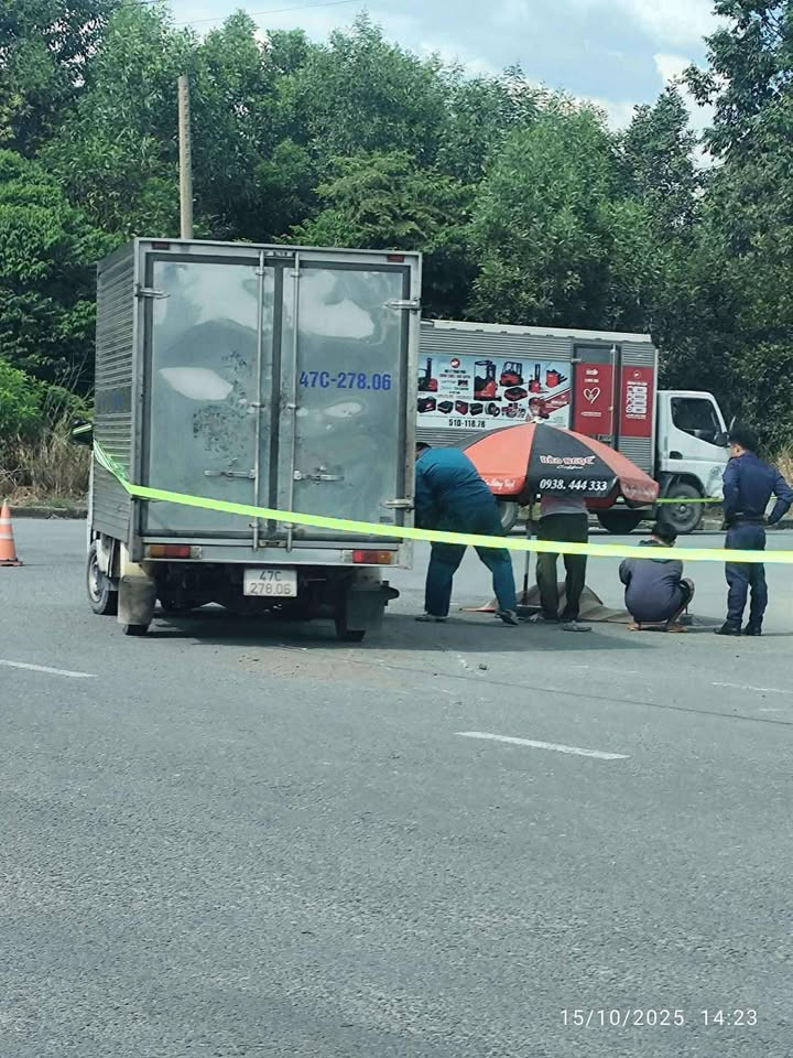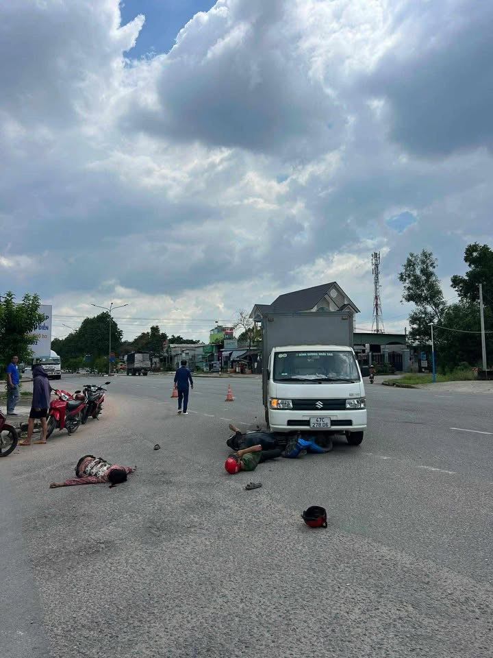 Cú va chạm mạnh khiến hai vợ chồng đi xe máy ngã xuống đường. Người vợ không may đập đầu xuống đất, tử vong tại chỗ, trong khi người chồng bị thương nặng, nằm gần bánh xe tải và đã được đưa đi cấp cứu.