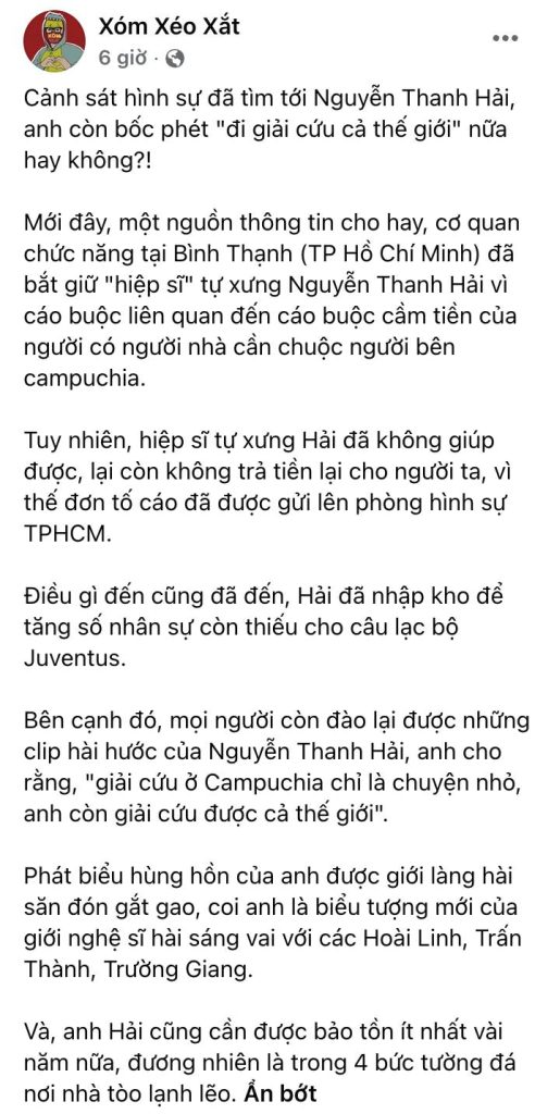 Theo nguồn tin ban đầu, người nhà của một nạn nhân bị lừa sang Campuchia đã nhờ ông Hải “giải cứu” và chuyển tiền nhờ giúp đỡ, tuy nhiên sau đó việc cứu người không thành và số tiền cũng không được hoàn trả. Vụ việc vì thế đã được gửi đơn tố cáo lên Phòng Cảnh sát hình sự Công an TP.HCM để điều tra, xác minh.