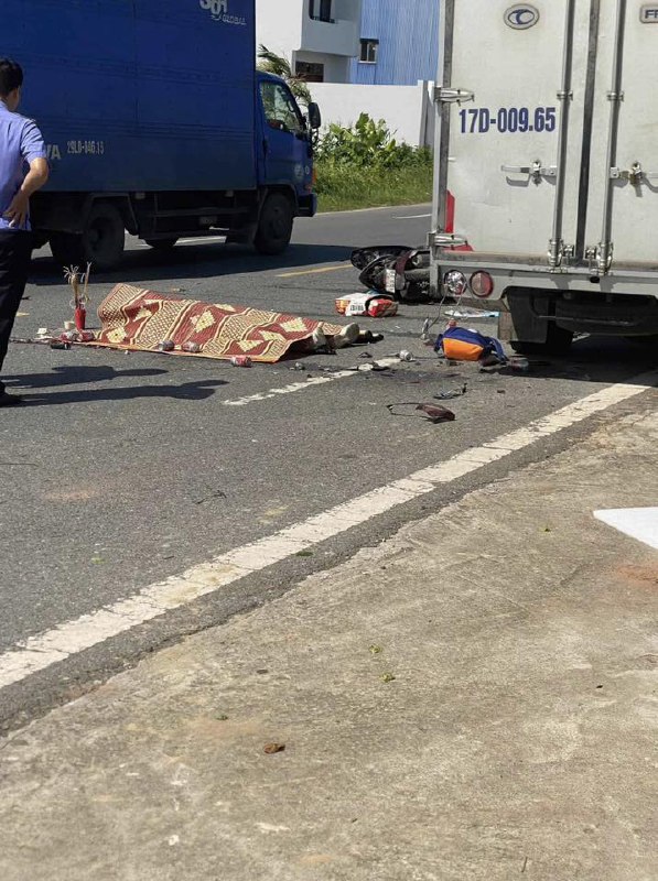 Theo thông tin ban đầu, một người điều khiển xe máy chạy với tốc độ cao đã tông thẳng vào đuôi xe tải đang đỗ ven đường. Cú va chạm mạnh khiến nạn nhân ngã văng ra và tử vong tại chỗ, được người dân dùng chiếu đắp lại ngay sau đó.
