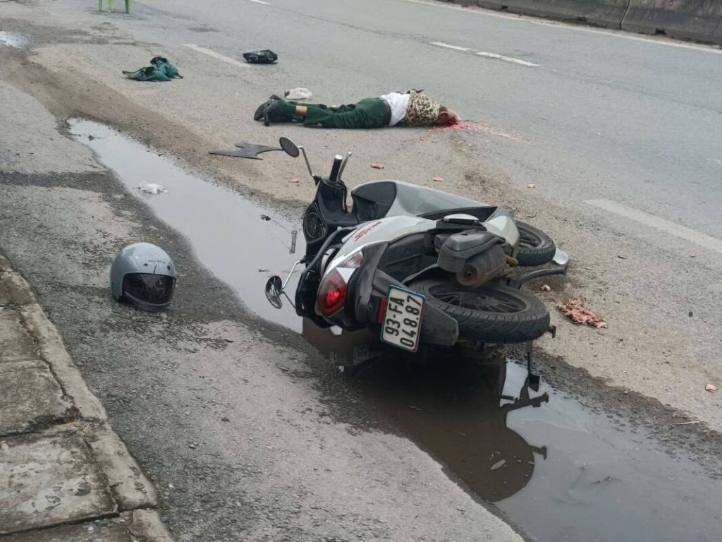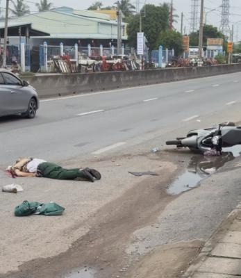 Cú va chạm mạnh khiến nạn nhân ngã xuống đường và bị bánh xe container cán qua, tử vong tại chỗ trong tình trạng đa chấn thương nặng.