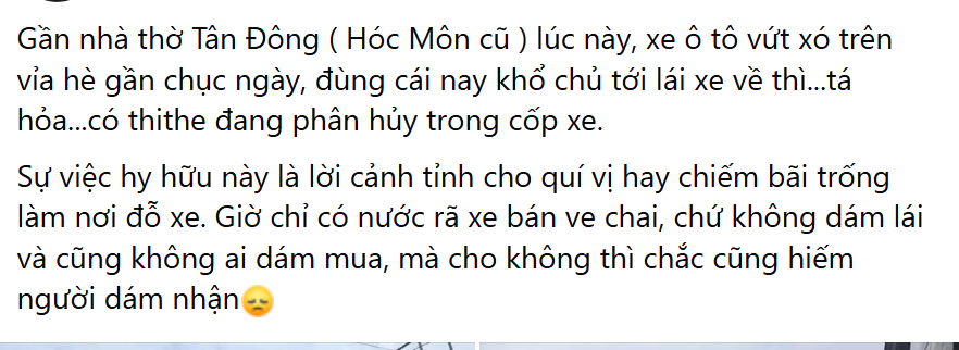 Trước đó, sáng cùng ngày, người dân trên đường Nguyễn Thị Đẹt, xã Đông Thạnh ngửi được mùi hôi nồng nặc từ chiếc ô tô đậu trên vỉa hè.