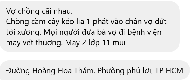 Người dân xung quanh nhanh chóng đưa nạn nhân đến bệnh viện cấp cứu, khâu 11 mũi (2 lớp).