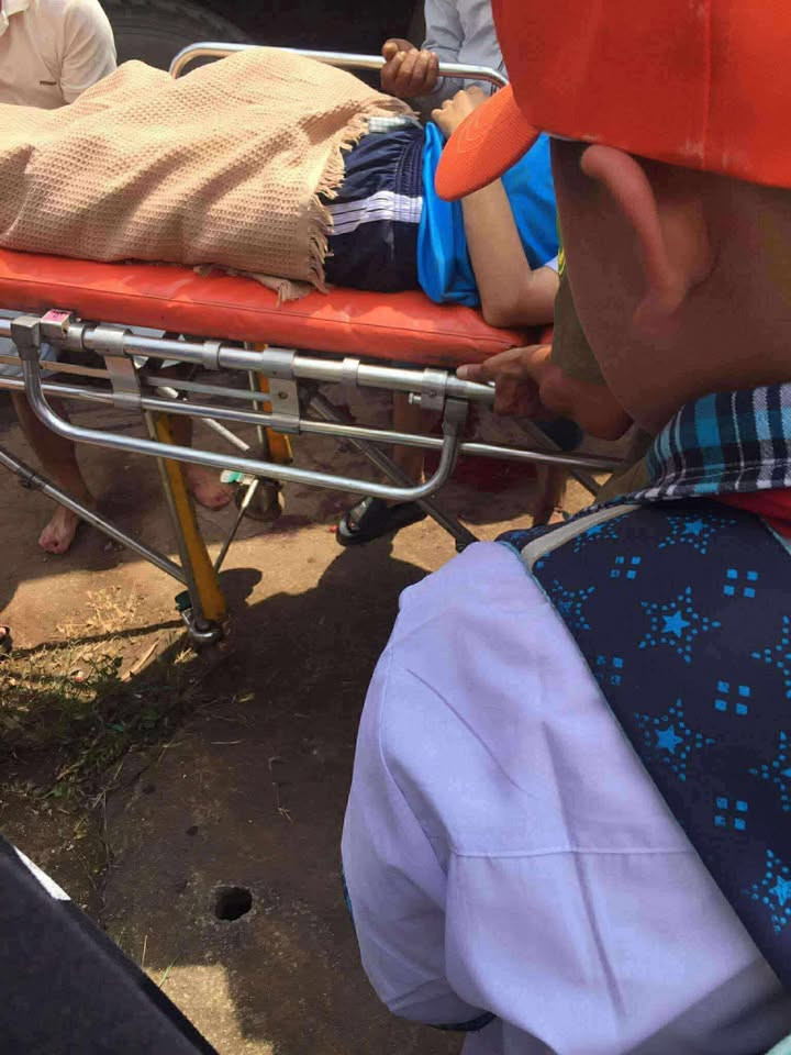 Hậu quả, em học sinh ngồi phía sau – mặc đồng phục thể dục – bị cuốn vào bánh xe ben và bị thương rất nặng ở hai chân. Em còn lại may mắn hơn, chỉ xây xát nhẹ.