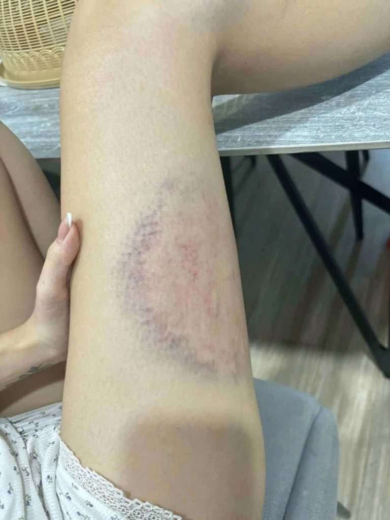 Đến tối, chị chủ động vào phòng xin lỗi chồng, không hề có ý định to tiếng. Tuy nhiên, người chồng to tiếng chửi bới, đỉnh điểm là kéo lê chị ra hành lang và đánh đập dã man trước sự chứng kiến của hàng xóm, chị cho biết.