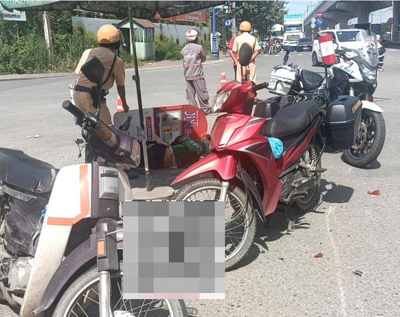 Trên xe máy lúc này có chở theo một hành khách nữ mặc áo trắng. Người này không bị thương, nhưng hoảng loạn mạnh sau vụ việc.